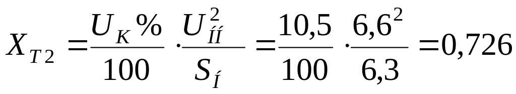 Трансформатор Т1: S = 63 МВА, 115/6,3 кВ, UК =10,5 %.
