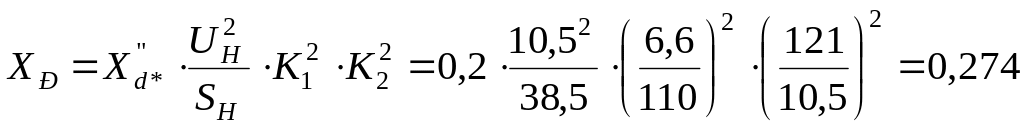 Приведение сопротивлений и ЭДС к одной ступени напряжения может быть выполнено точно с учетом действительных коэффициентов трансформации, указанных в паспортных данных.