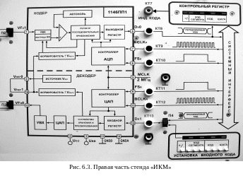 Кроме стенда «Изучение ИКМ кодека», показанного на рис. 6.1, для проведения измерений используются двухканальный осциллограф и цифровой вольтметр.