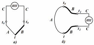 Рисунок 3 – Включение измерительного прибора в термоэлектрическую цепь