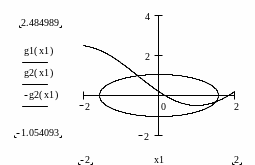 Розв'язок системи f(x1,x2)=0 за допомогою вбудованого блоку MATHCAD: