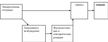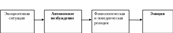 Автономное возбуждение оценивается человеком в связи с эмоциогенной ситуацией и в результате возникает эмоция.