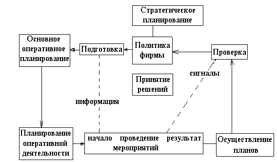 Стратегическое планирование заключается в постановке задач фирмы и определении целей, которые необходимо достигнуть для выполнения этих задач, а также в определении стратегических мер, которые должны обеспечить достижение этих целей. Стратегическое планирование является составной частью и следствием системы стратегического управления и оно проявляется тогда, когда выбранную стратегию необходимо превращать в конкретные виды деятельности. На рис.10.1 показана процедура выполнения функции управления.