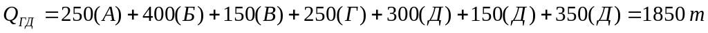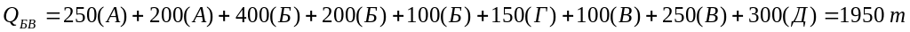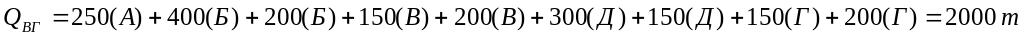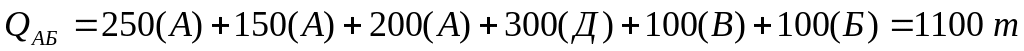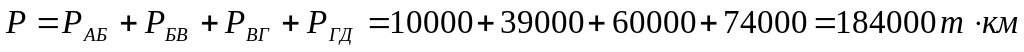 АБ = 10 км; БВ = 20 км; ВГ = 30км; ГД = 40 км (стрелки показывают направления перевозок)