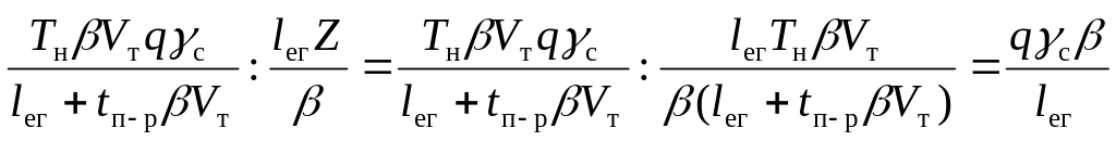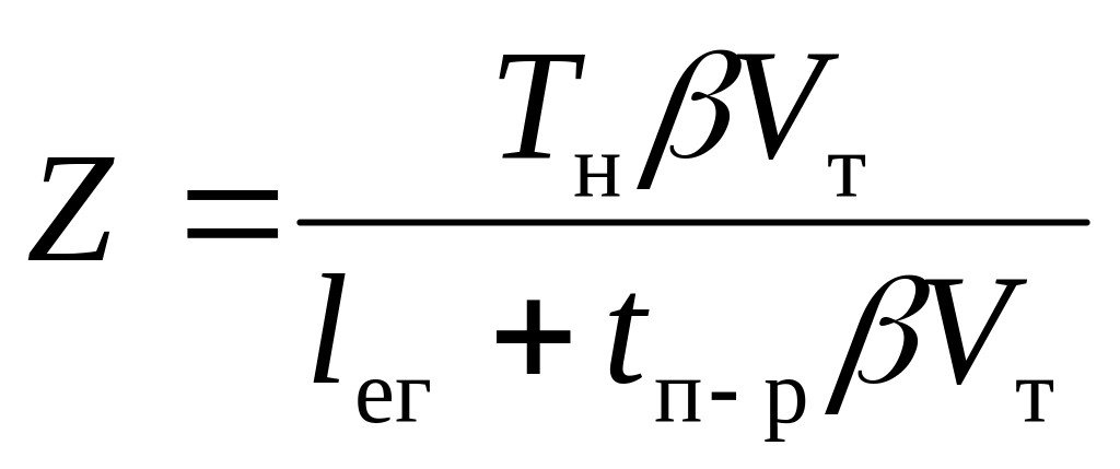 Количество ездок одного транспортного средства Z = (Tн – Tдв.0) / tе = = Tм / tе = Tм βе Vт / (lег + tп-р βе Vт).