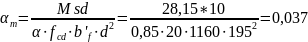 Мsd = 28,15 кН ·м < МRdf, 133,43 кН ·м , следовательно, нейтральная ось проходит в пределах полки и тавровое сечение рассчитываем как прямоугольное.