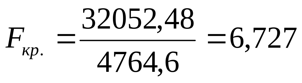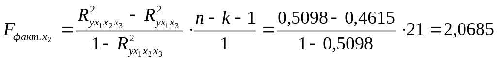 Fтабл. = 4,32 при k1 = 1 и k2 = n – k – 1 (21) и уровне значимости 0,05.