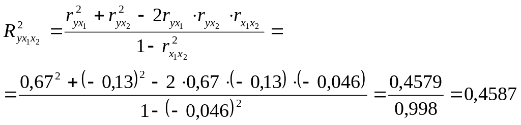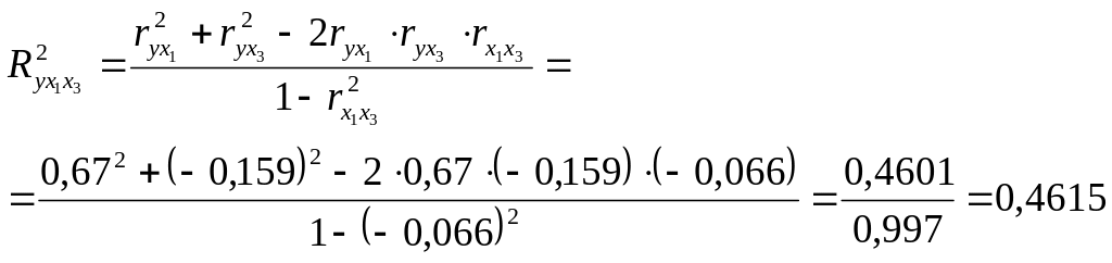 Рассчитаем коэффициенты множественной детерминации: