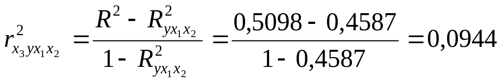Рассчитаем коэффициенты частной детерминации и частной корреляции: