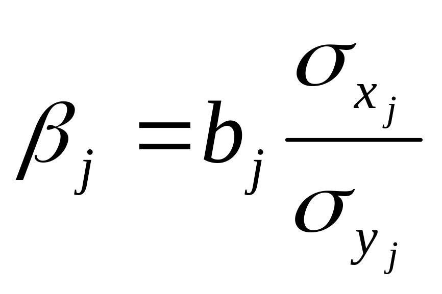 Для приведения условных чистых коэффициентов регрессии в сравнимый вид рассчитаем стандартизированные коэффициенты регрессии:
