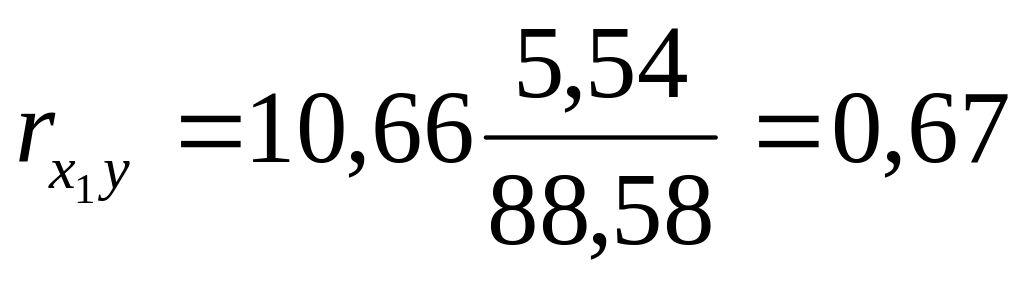 Уравнение регрессии показывает, что с увеличением х1 на 1 тыс. руб. у увеличивается в среднем на 10,66 тыс. руб. Зависимость между факторами прямая и сильная. Вариация у на 44,89% объясняется вариацией х1.