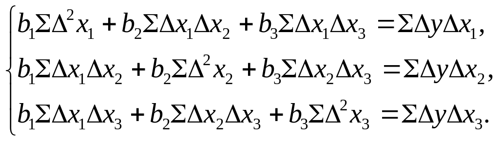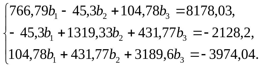 Построим уравнение множественной регрессии. Для определения коэффициентов условной чистой регрессии решим систему нормальных уравнений: