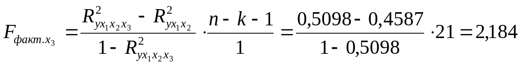 Найдем частные F–критерии Фишера: