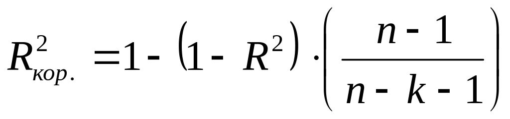 Корректированный коэффициент детерминации меньше, чем некорректированный, поскольку исключение слабого фактора всегда снижает некорректированный коэффициент детерминации.