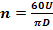 Виразимо число обертів n через колову швидкість роторів на діаметрі D: