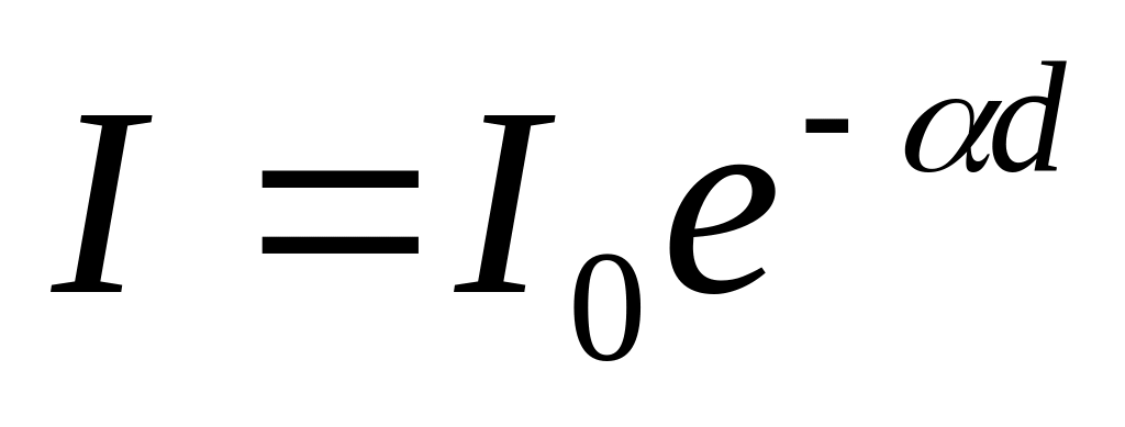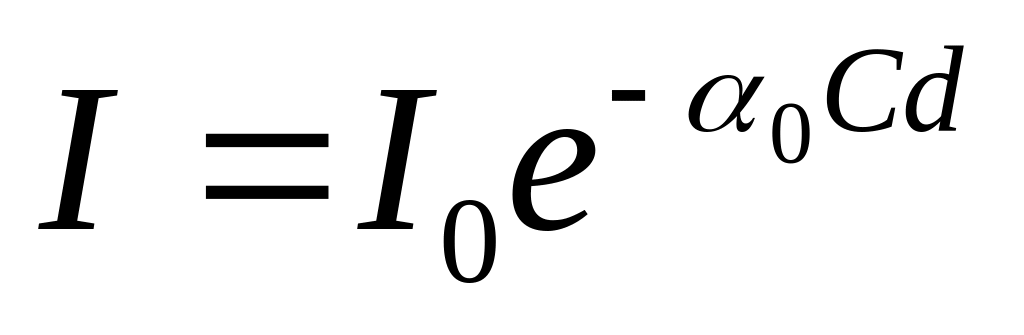 При прохождении света через прозрачные растворы, газы он частично поглощается. Пусть на прозрачную среду падает свет интенсивности І0 . Интенсивность света І, прошедшего через раствор, согласно закону Бугера-Ламберта, определяется по формуле: