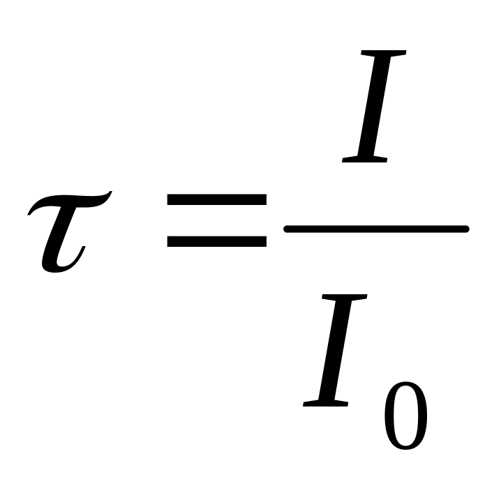 где τ – коэффициент светопропускания, І0 – интенсивность падающего светового потока, І – интенсивность светового потока, прошедшего через раствор.
