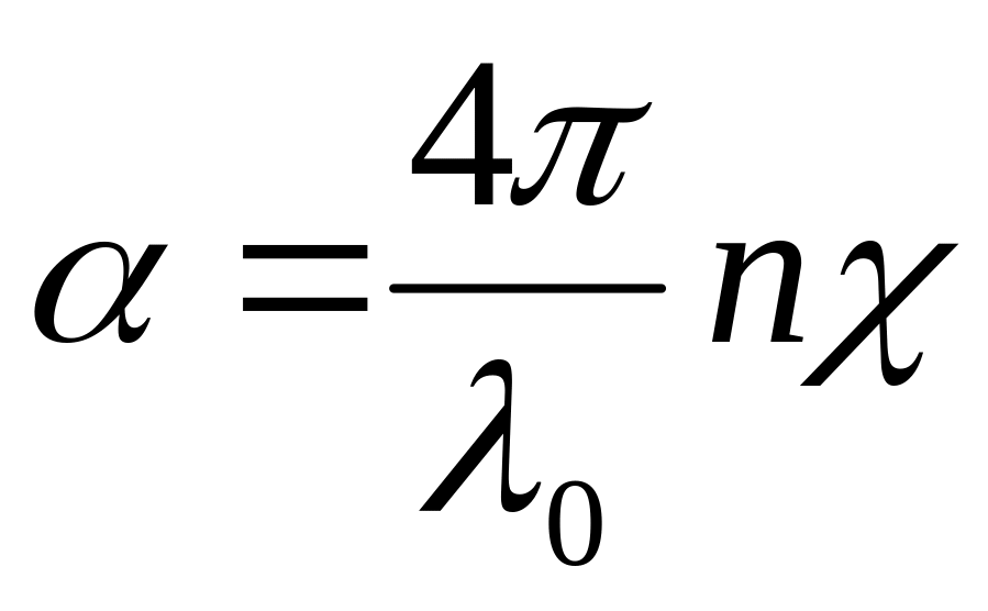При прохождении монохроматической световой волны через вещество происходит затухание амплитуды волны в поглощающей среде. Затухание амплитуды характеризуется показателем затухания χ , который связан с коэффициентом поглощения α соотношением: