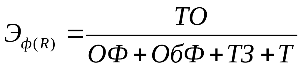 Уровень эффективности использования ресурсов = показатели результатов функционирования рынка / показатели общего объема ресурсов, обслуживающих процесс товарного обращения (или показатели объема каждого вида ресурсов (материальных или трудовых)