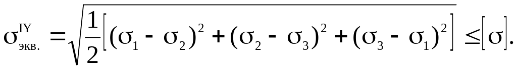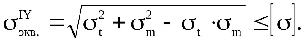 Сосуды давления изготавливаются, в большинстве случаев, из пластичных материалов. Поэтому проверку стенки сосуда на прочность проводят с использованием третьей (гипотеза наибольших касательных напряжений) или четвертой (энергетическая гипотеза) гипотезам.