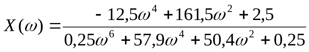 Выполнить расчет и вывести на печать значения действительной X() и мнимой Y() частей амплитудно-фазовой частотной характеристики разомкнутой системы автоматического регулирования частоты вращения вала дизеля в диапазоне частот от 0 до (5 + 0б2n) с-1 с шагом 0б05 по выражениям:
