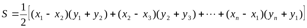 Определить ориентированную площадь S многоугольника с вершинами в точках P1,...,P(15 - n), координаты которых на плоскости заданы произвольно: