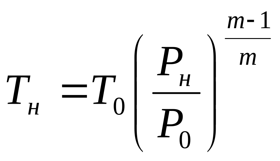 где Т0 = 295 0К - температура воздуха на входе в нагнетатель; Рн и Р0 - давление воздуха на выходе и на входе в нагнетатель соответственно; m = 1,7 - показатель политропы.