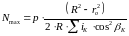 Усилие от внутреннего давления (N) в нитях корда каркаса диагональных и радиальных, а также брекера диагональных шин определяется по формуле, выведенной для меридианальной составляющей силы внутреннего давления: