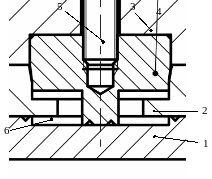 1 – плита нижняя; 2 – матрица; 3 – плита верхняя; 4 – знак верхний; 5 –болт; 6 – облойная канавка