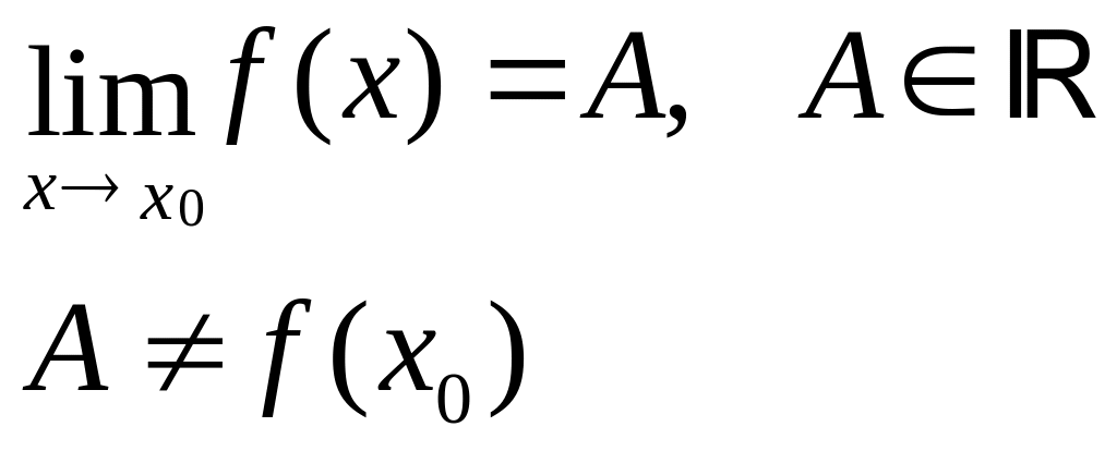разрыв типа выколотой точки, или устранимый разрыв в точке , если существует конечный предел