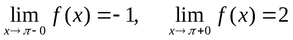 3. Функция имеет в точке разрыв первого рода (типа выколотой точки);