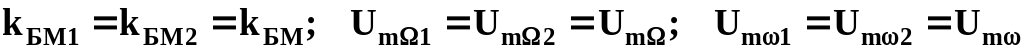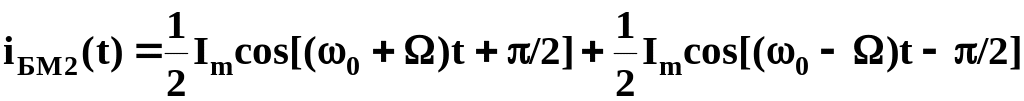 Как отмечалось выше, БМ – это перемножитель двух сигналов, действующих на входах. Поэтому токи на выходе БМ1 и БМ2 можно представить в виде