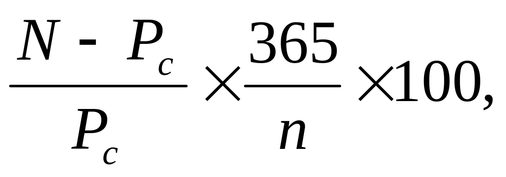 Формула (9) характеризует эффективность инвестирования средств в ГКО на аукционе или вторичных торгах с учетом того, что инвестор держит облигации до их погашения.