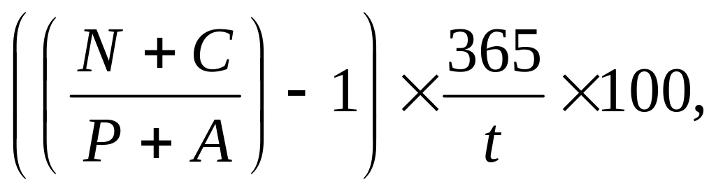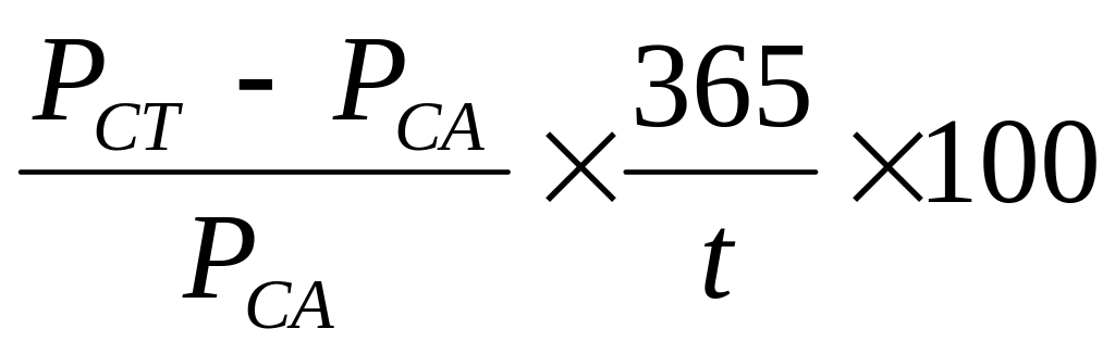 Формула (10) характеризует эффективность операций инвестора, который приобрел облигации на аукционе по средневзвешенной цене и, не дожидаясь срока их погашения, реализовал их на вторичных торгах также по средневзвешенной цене. Следует также учесть, что в официальных формулах Центробанка РФ используются только средневзвешенные цены аукциона или вторичных торгов. Фактические же цены покупки или продажи облигаций отдельным инвестором отличаются от средневзвешенных (за исключением приобретения облигаций на аукционе по неконкурентной заявке). Таким образом, при расчете доходности ГКО для инвестора формула расчетной доходности к погашению (9) может быть записана следующим образом:
