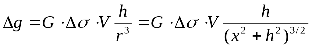 Формула для вычисления g может быть получена из (1.3) путем замены элементарной массы dm массой шара в силу того, что притяжение однородным шаром происходит так, как если бы вся масса была сосредоточена в центре шара. Учтя, что x'=y'=0,z'=h, x=y=z=0, r=(x2+h2)1/2 , получим для шара