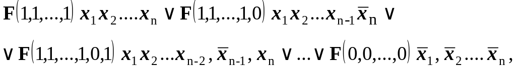Рассмотренная формула содержит в виде логических слагаемых всевозможные конъюнкции указанного вида и полностью определяет функцию . Таким образом, значения функции F и всей формулы в целом совпадают на всех наборах значений переменных .