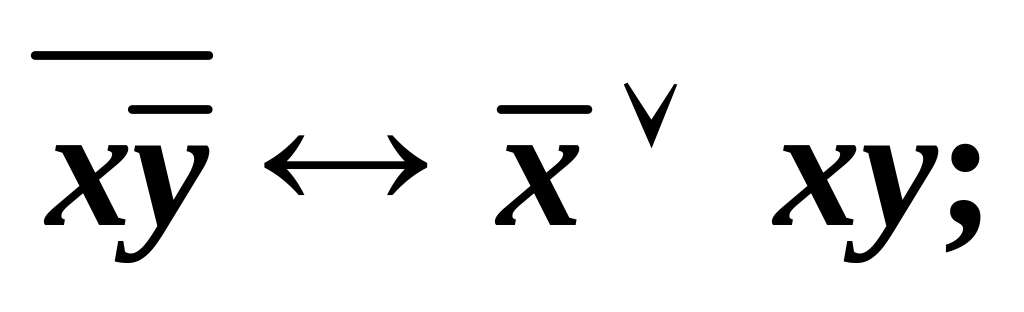 - •II. Равносильности, выражающие одни логические операции через другие: