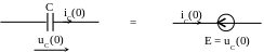 Емкость в схеме после коммутации заменена источником напряжения (э.д.с.), величина которого равна напряжению на емкости в момент коммутации, то есть ННУ uС(0) (рис. 5.20).