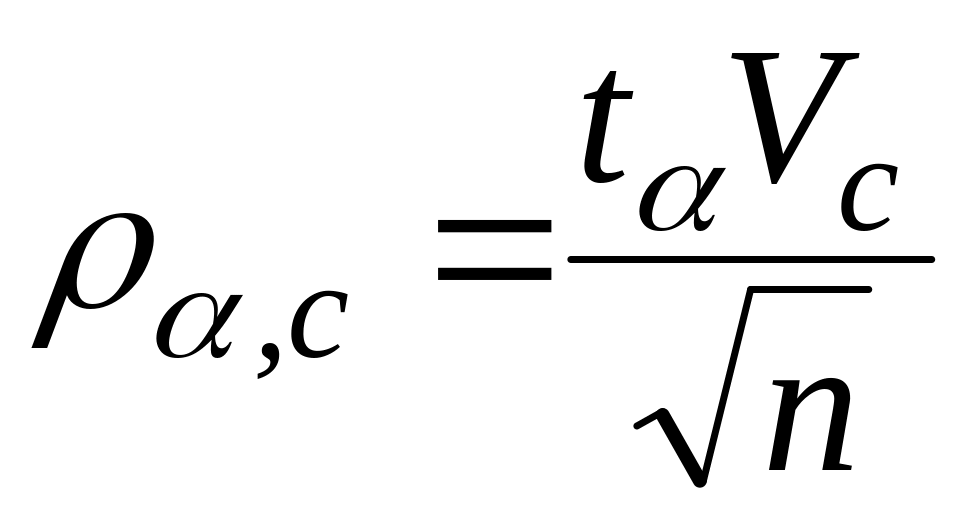 де ν – статистичний критерій, що приймається залежно від числа визначень n характеристики за таблицею 5.