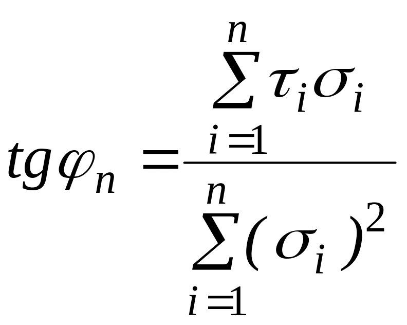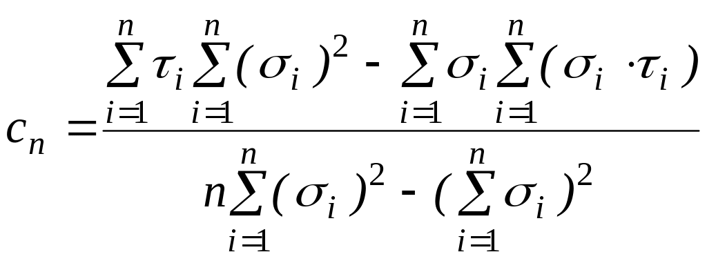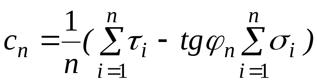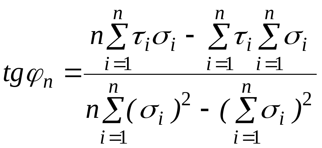 1.1. При статистичній обробці всіх пар дослідних значень τi та ci як єдиної сукупності нормативні значення tgφn і cn обчислюють за формулами:
