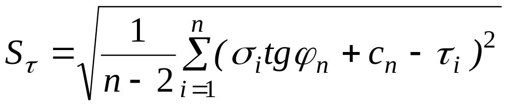 Якщо будь-яке значення τі буде виключене, слід заново обчислити значення tgφn, cn та Sτ за дослідними даними, що залишились.