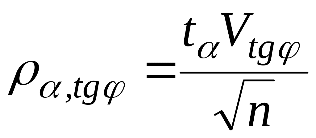 2.4. Обчислюють для tgφ і c коефіцієнт варіації V, показник точності ρα, коефіцієнт надійності за ґрунтом γg та їх розрахункові значення за формулами: