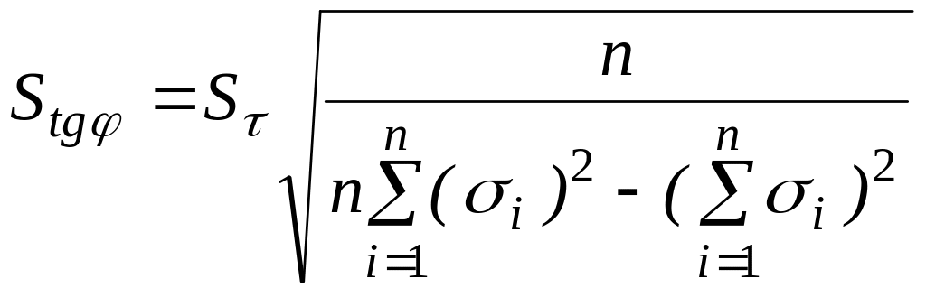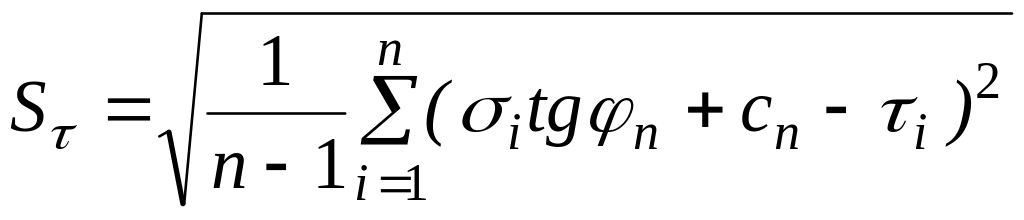 3.3. Визначають середнє квадратичне відхилення опору зрізу Sτ за формулою (3.4), а також Sс і Stgφ