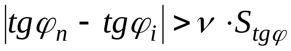Пару значень tgφj і cj виключають, якщо хоча б для одного з них виконується умова (3.22). При цьому для дослідних даних, що залишились, слід заново обчислити значення tgφn, cn, Stgφ та Sc.
