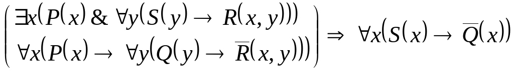 x [P (x) & y [S (y)R (x, y)]]} x[P (x) & y[Q (y) R (x, y)]];