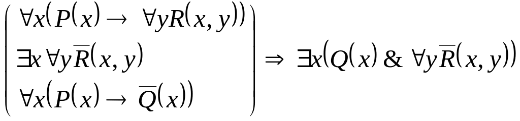 а) {x [P (x) →y R (x, y)], x y R (x, y), x [P (x) →Q (x)]}