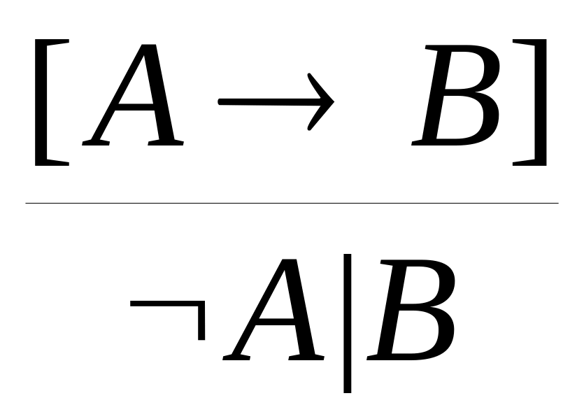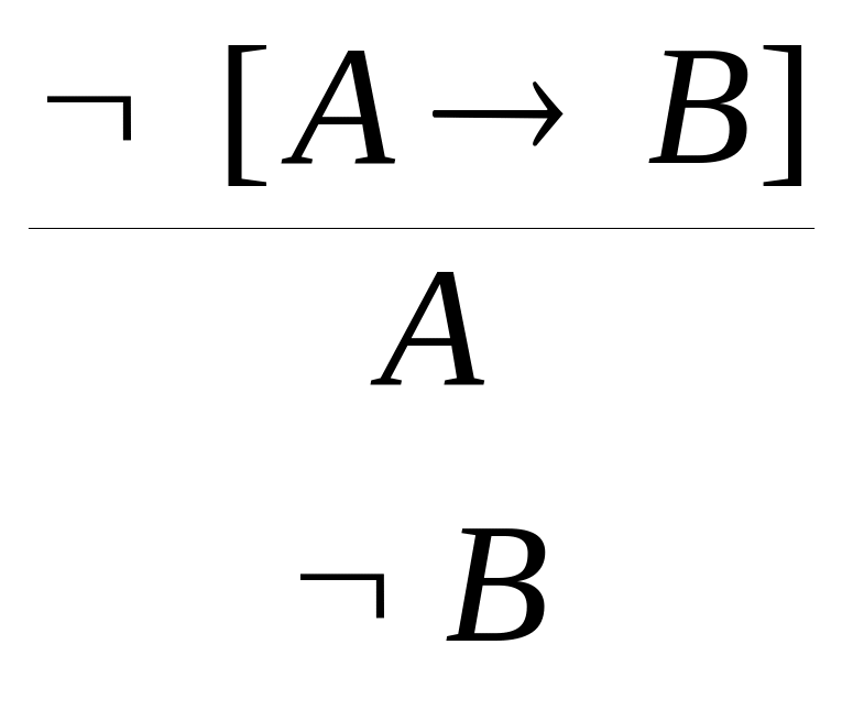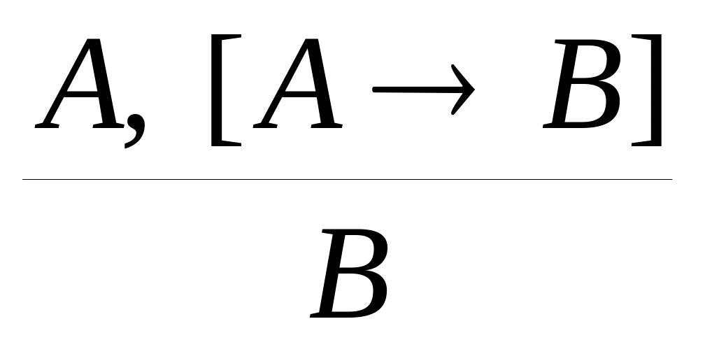 Чтобы иметь представление о правилах вывода, рассмотрим следующую ситуацию. Допустим, в некотором естественном математическом доказательстве на некотором этапе мы доказали утверждение A, затем доказали, что из A следует утверждение B, тогда мы делаем вывод, что истинно утверждение B. Считая A и B предложениями логического языка, можно возвести такую ситуацию в ранг правила, по которому из истинности предложений (посылок) A и [A→B] можно в качестве заключения вывести истинность предложения B. Такое правило можно записать в виде