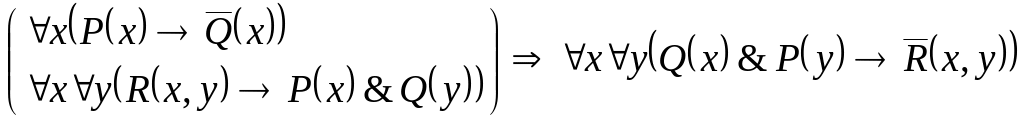 xy [R (x) & T (y)&P (x) → Q (x)];