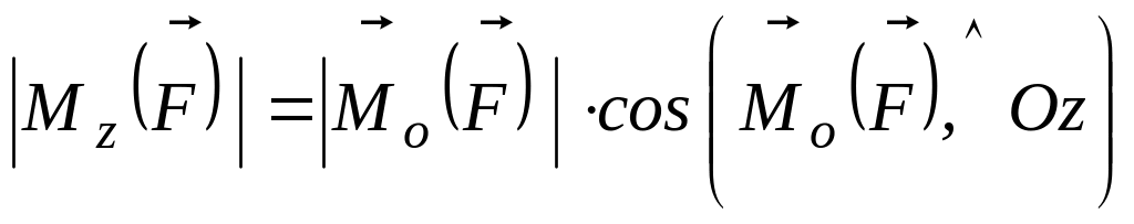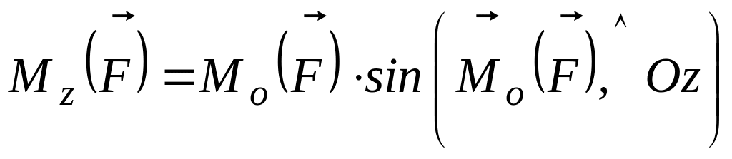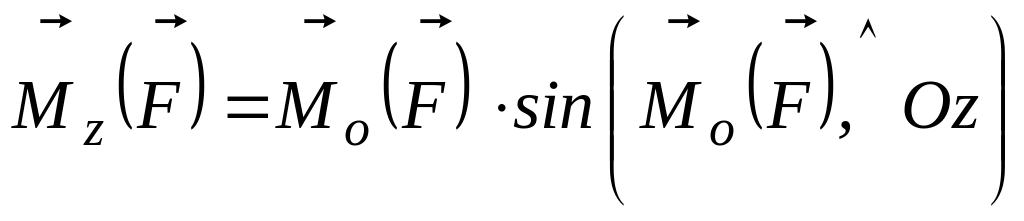 5. Вкажіть залежність між моментом сили відносно точки O і моментом сили відносно осі Oz, яка проходить через задану точку.