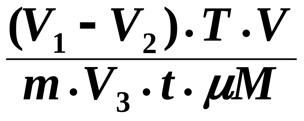 Розрахунок вмісту каталази виконують за формулою, одиниць каталази: